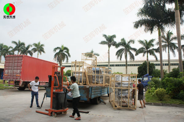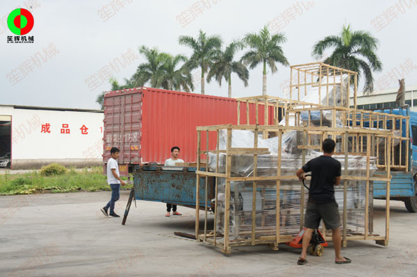 客戶定制的生產線設備包括了:分選臺,渦流洗菜機,提升機等設備。同一時刻,另一批客戶的設備也正在等帶裝車發貨!